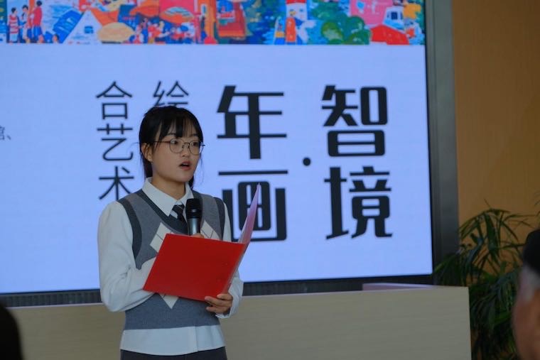 最后绘画系学生代表张芯菲同学发言,张芯菲表示作为新时代的学子,我们始终铭记:文化传承不是简单的临摹复刻,而是要让传统活在当下。这需要我们既保持对传统的敬畏之心——像前辈记录渔网褶皱那样捕捉生活的肌理;也要培养创新思维——用科技手段让年画艺术与当代审美共振。