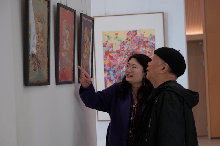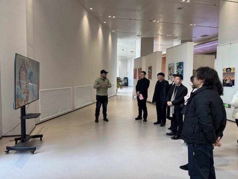 原馆长陈明表示,胶南年画作为青岛地区独具特色的民间艺术形式,承载着几代人的文化记忆与情感寄托。从最初的门神画、灶王画,到后来的民俗画、风景画,胶南年画始终扎根乡土,以鲜艳的色彩、质朴的笔触,描绘着人们对美好生活的向往与追求。今天,看到青岛黄海学院设计与美术学院举办的“智境·年画”展览,他感到无比欣慰。展览将传统年画与现代艺术理念、数字技术相结合,创造出令人耳目一新的艺术作品,为年画的传承与发展开辟了新的路径。