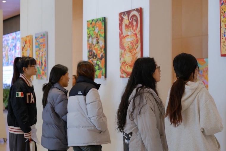 展览现场,一幅幅充满创意的年画作品令人耳目一新。绘画系师生以动态年画、数字AI艺术等多种形式,将年画中的经典元素与现代艺术表现手法相结合,展现出传统与创新的完美融合。