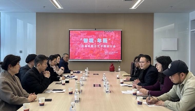 观展后,原馆长陈明、主任陈知保等专家及设计与美术学院领导、绘画系主任及师生代表移步知信楼307会议室探索年画未来发展,进行工作交流指导。与会嘉宾从不同角度分享了他们对年画艺术的见解,探讨了如何在保留传统文化精髓的同时,赋予年画新的时代意义。