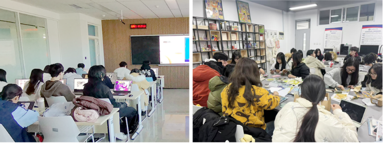 同时由刘雨、解琪云、臧运秀、黄子贤、申宜田、褚薇等青年教师组成的课程团队,协同建设线上课程平台,推动翻转课堂与实践教学融合,联合新区文化机构、社区单位开展项目合作,推动教学成果从课堂走向社会。插画课程组正逐步成长为学院服务地方文化建设的重要品牌阵地。