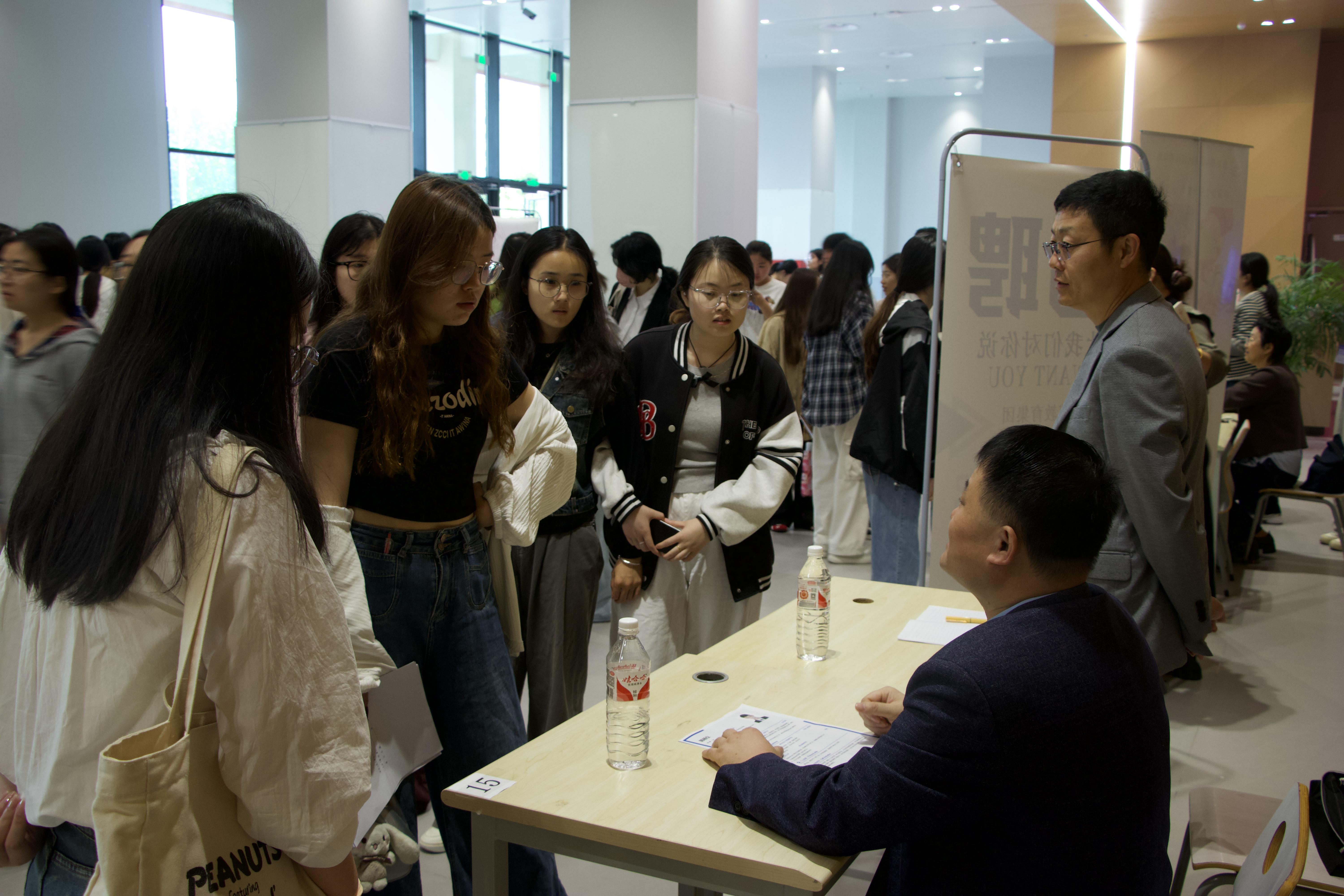 双选会现场,青春的朝气与职场的期许交织成动人画卷。设美学子目光里跃动着对未来的憧憬,穿梭于林立的展位之间。企业招聘团队热忱迎接每位学子--他们手持宣传手册,讲述企业的核心价值与品牌故事,用鲜活案例勾勒出清晰的职业发展路径,将岗位需求拆解为具体的能力画像。面对同学们关于职业成长、技能要求的困惑,他们用专业解答为求职之路点亮明灯。