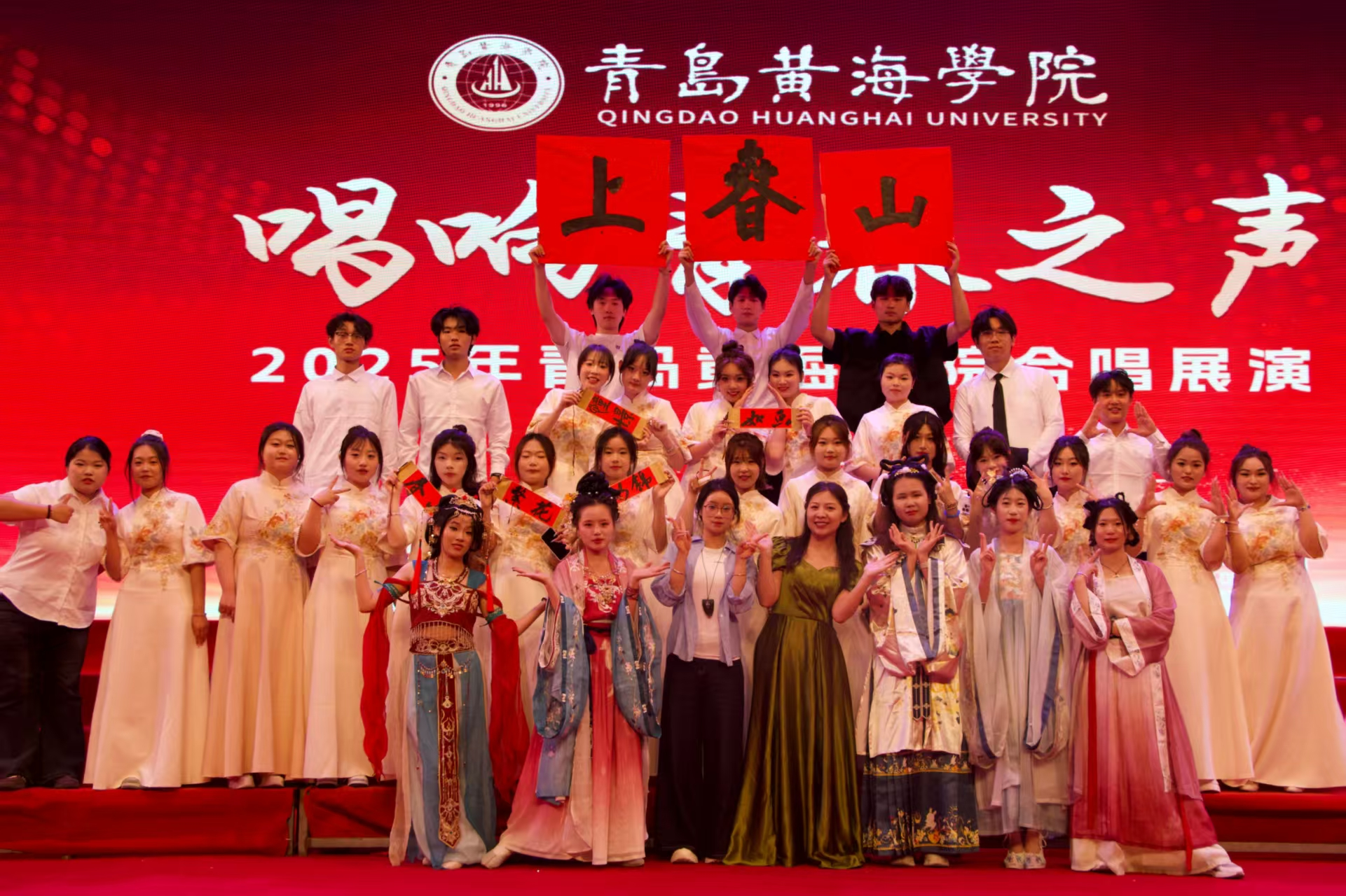 5月23日晚,青岛黄海学院体育馆内,青岛黄海学院2025年 “唱响青春之声”合唱展演活动拉开帷幕,展演现场热闹非凡,观众们满怀期待,空气中弥漫着欢乐与兴奋交织的气息。设计与美术学院师生们以一场《上春山》合唱演出,将春日的诗意与艺术的灵动完美融合。舞台之上,清澈嘹亮的歌声化作山间潺潺溪流,婉转悠扬的旋律幻作林间缕缕清风,用音乐勾勒出一幅灵动鲜活的春日山水画卷,为观众带来了一场沉浸式的视听盛宴。