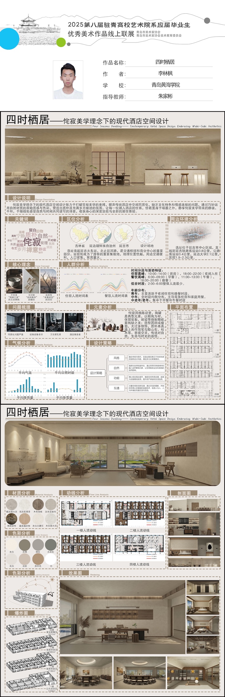 此次联展由青岛市美术家协会、青岛市美术家协会美术教育委员会主办,旨在全面展示2024 - 2025学年驻青高校艺术教学与创作新成果,促进各高校艺术学院间的学术交流,提升美术学科建设水平和人才培养质量。在本次展览中,我校多位同学的作品成功入选,这些作品涵盖了插画、视觉传达设计、环境设计、书法等多个领域,展现了我校学子多元的创作视角和扎实的专业能力。