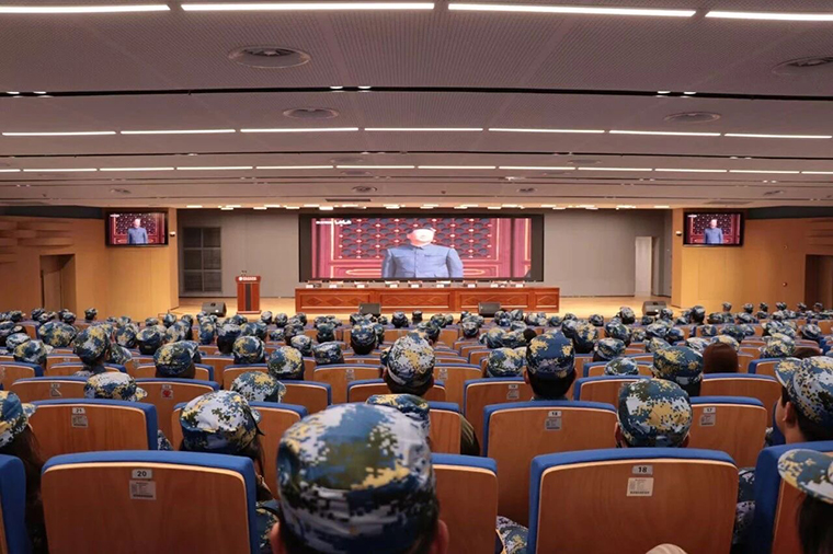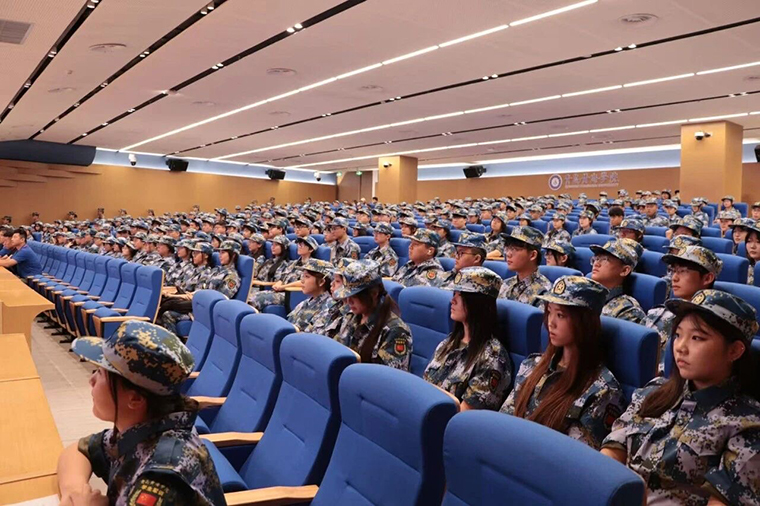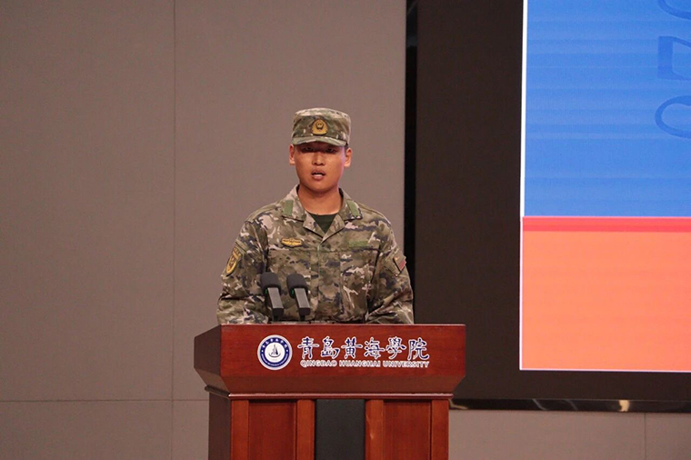 参训学生代表米好发言,军训是我们学习军人品质、传承抗战精神的宝贵机会。她代表所有参训学生承诺,将以军人的标准严格要求自己,磨砺意志,展现新时代青年的风采。大学四年是积蓄力量、磨砺锋芒的黄金时期,作为黄海学子,将深耕专业、锤炼本领,践行“请党放心,强国有我”的青春誓言,以实际行动为中华民族伟大复兴贡献力量。从军训开始,一切行动听指挥,践行“知行合一”的校训,用青春和汗水为黄海学院增添新的荣光!