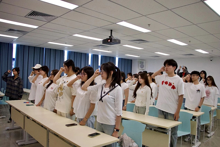 近日,设计与美术学院新团员入团仪式于知信楼334隆重举行。这场仪式不仅是对优秀青年的礼赞,更是一次青春力量的接力传递,设计与美术学院团总支书记闫应军、34名新发展团员出席本次仪式。