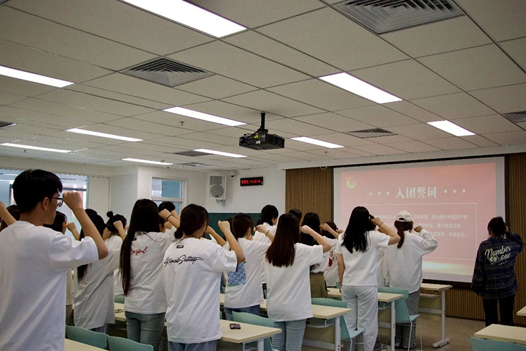 新团员们身着整齐的服装,昂首挺胸,他们的眼神中,满是对加入共青团的期待与向往。在领誓人的带领下,新团员们迅速举起右拳,齐声宣誓,誓言字字千钧,响彻整个会场,激荡在每一位师生的心间,展现出了新时代青年传承五四精神、接续奋斗的坚定决心。宣誓后,团员们共同唱响《光荣啊,中国共青团》,激昂的旋律中,青春的力量在歌声中凝聚、升腾,齐唱结束,这一刻,入团仪式圆满礼成,新团员们将肩负使命在青春征程中砥砺前行。