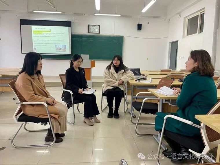 课堂是师生进行交流互动、实现知识传递的重要桥梁。为了切实提升课堂教育教学质量,不断在立德树人、铸魂育人上取得新实效,语言文化学院大学英语教学部《中国文化概要》课程组骨干教师于4月2日下午在知诚楼405室进行了专题教学交流活动。教学部主任陈亚非、副主任李明雪、课程组负责人綦青、骨干教师全莉、杨晓参与讨论。