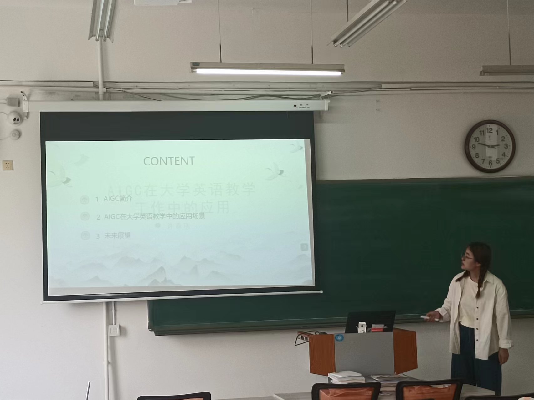 语言文化学院大学英语教学部《大学基础英语》课程组于6月12下午2:30-3:30在知诚楼303室倾听了由骨干教师王伟做的主题为“中国文化走向世界的课堂实践”的研究分享。