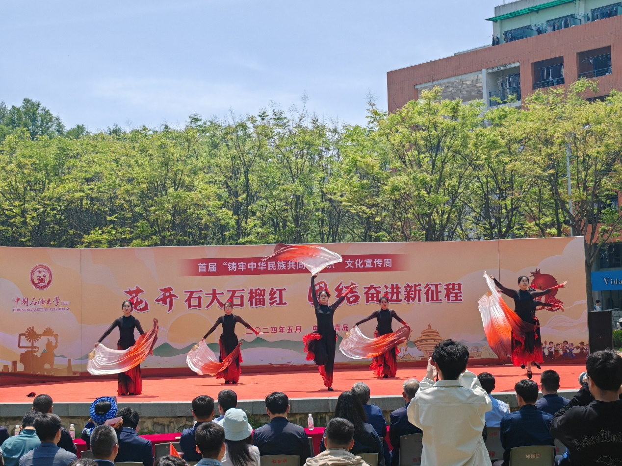 2024 年 5 月 9 日,青岛黄海学院马克思主义学院名誉院长朝克·吉勒图教授,语言文化学院副院长刘奕蔓,国际商学院团总支书记于姗姗,语言文化学院团总支书记郭潇雨,国际商学院石榴籽成长班学生代表受邀参加中国石油大学(华东)首届“铸牢中华民族共同体意识”文化宣传周文化艺术展演,此次展演的主题为“花开石大石榴红,团结奋进新征程”。