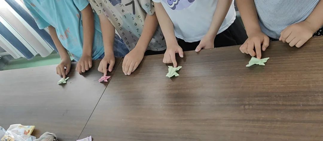 昨天教孩子们学会了折小青蛙,今天在班里举办了小跳蛙比赛,比比谁的青蛙跳的远。我们用生动有趣的方式诠释知识的魅力,让孩子们在欢笑中学习,在学习中成长。我们鼓励他们勇敢地表达自我,激发他们的创新思维,让他们在知识的世界里自由翱翔。