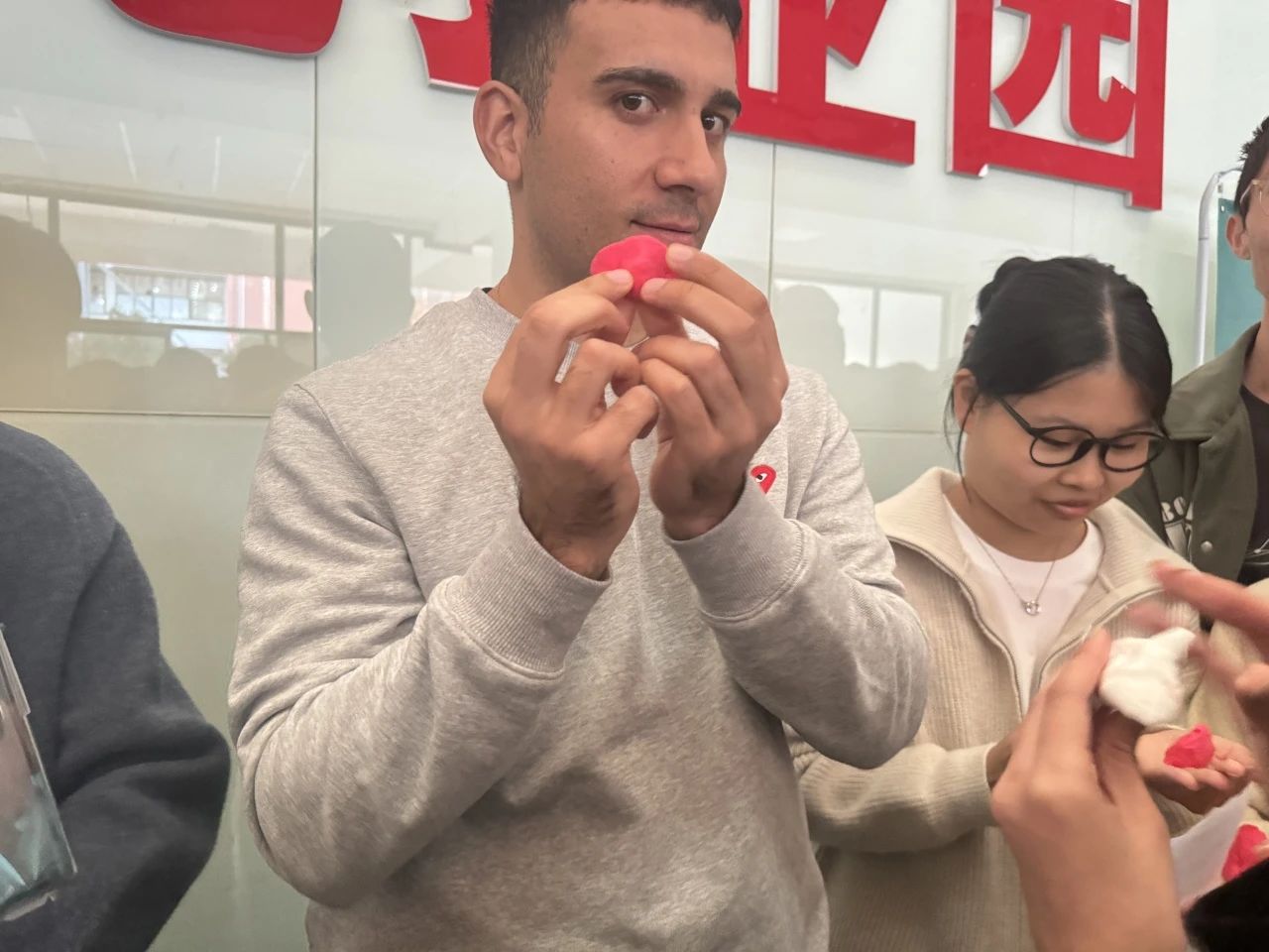 与外教共同制作彩泥饺子时,同学们的语言描述能力大放异彩,创造力和团队协作能力得到了充分的发挥。同学们纷纷组成一个个团队,打造属于自己的个性饺子!