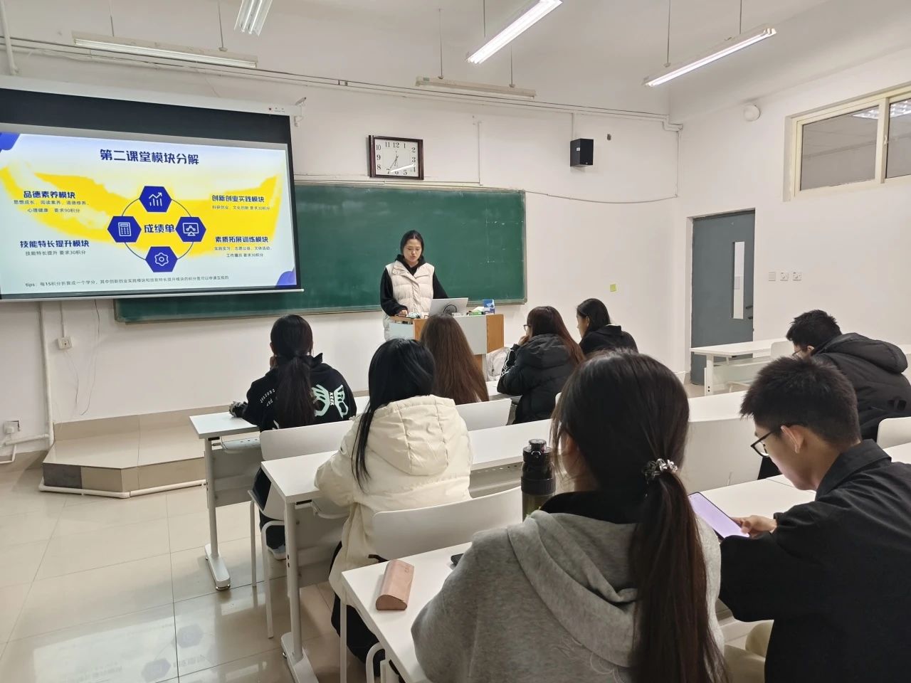 接着,黄部长以班级为单位,结合各班实际情况,对班级策划案、智慧团建的制定与推广进行讲解。这一做法有助于提升同学们对第二课堂的积极性、认同感和归属感,以更好地完成第二课堂的学习任务。