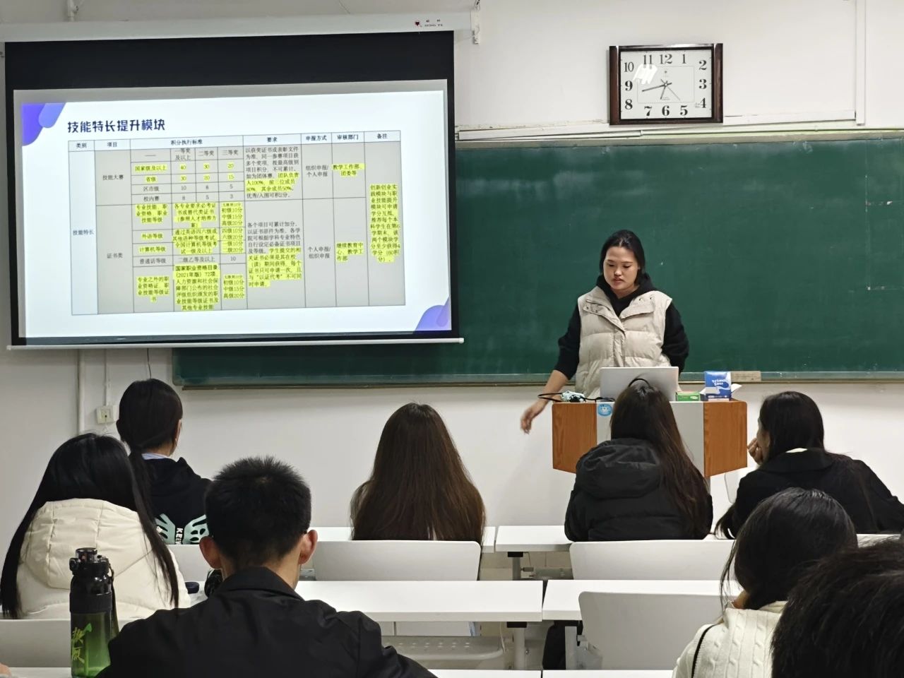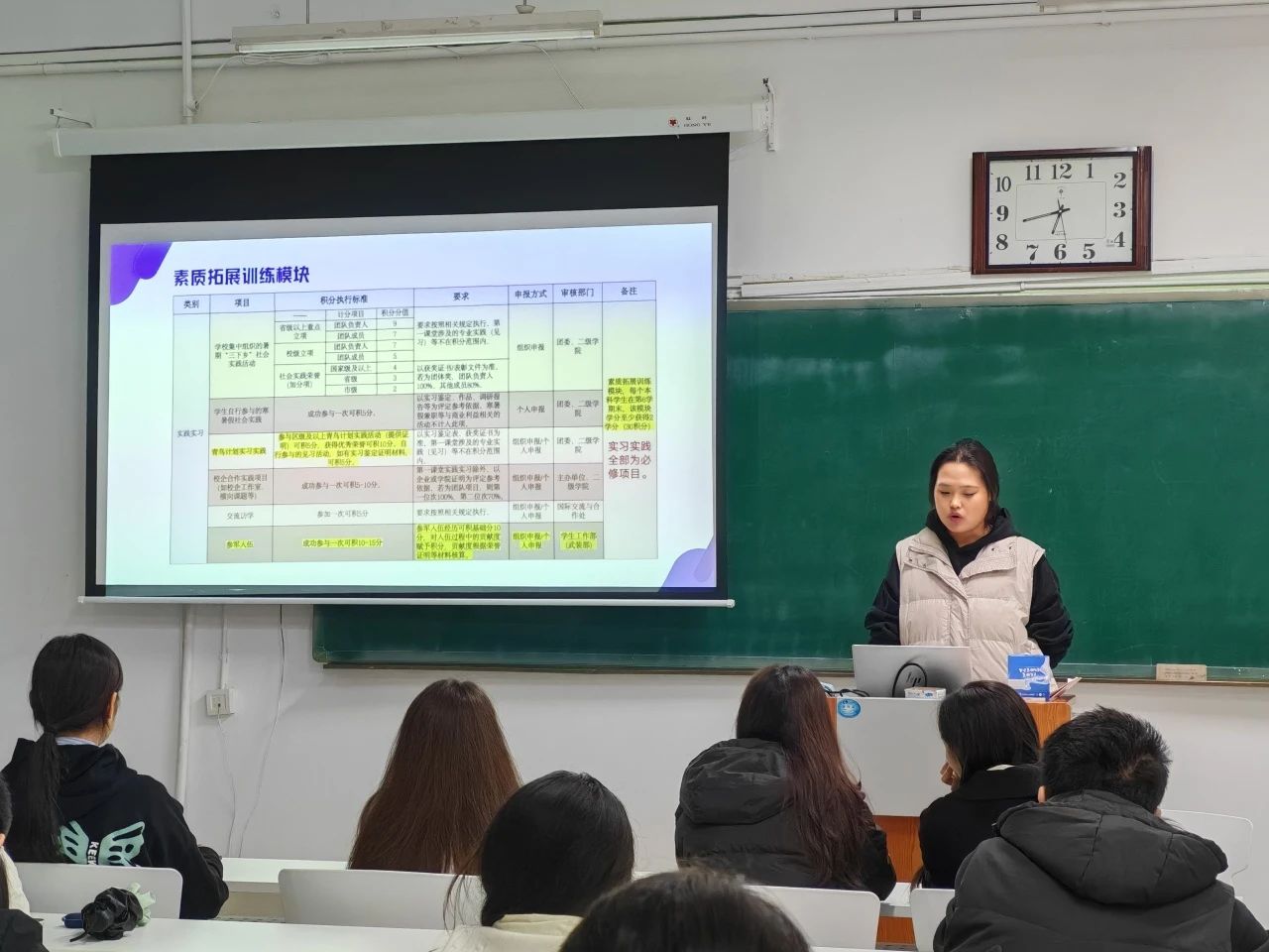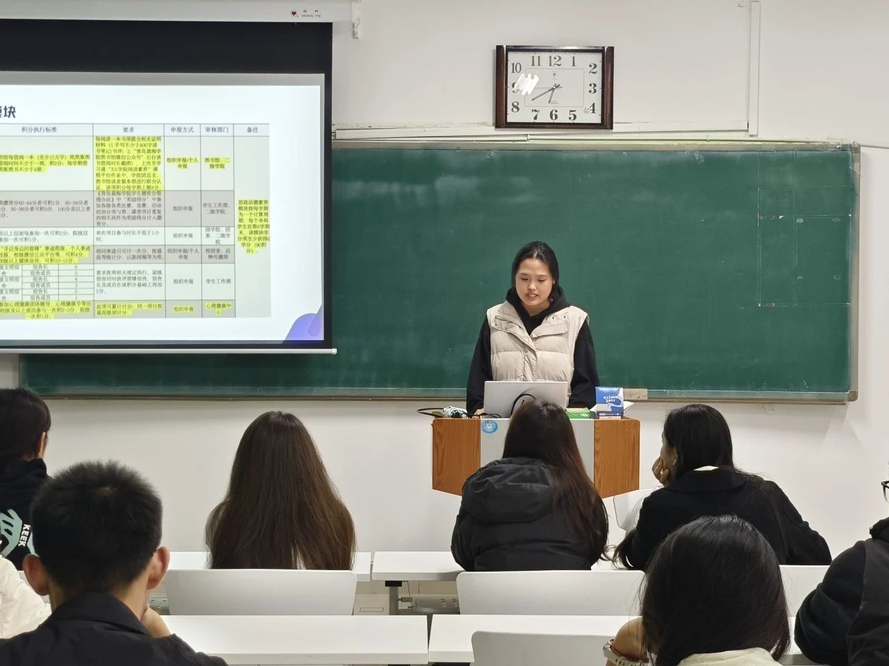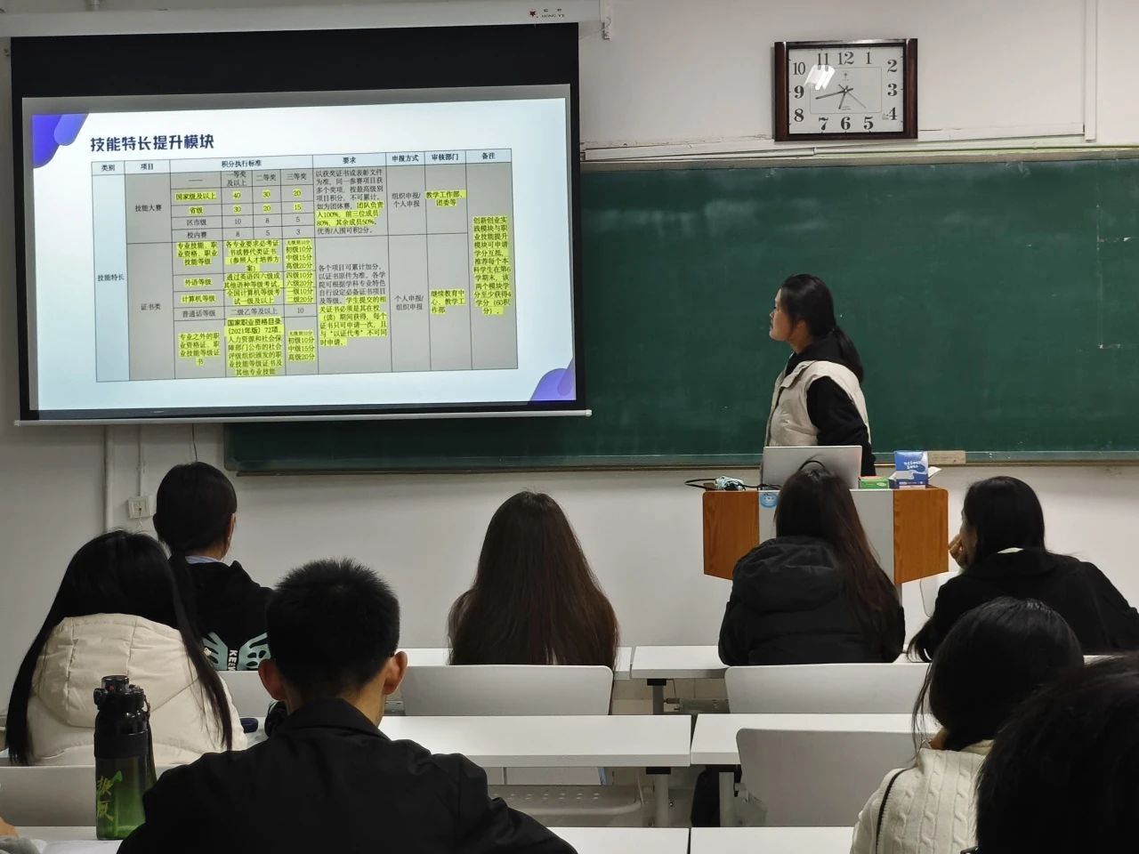 会议伊始,组织部副部长黄佳佳对第二课堂成绩单制度展开全面解读。以同学们的关注度为依据,她深入且浅出、耐心且细致地从第二课堂概念、到梦空间使用方法、积分获取途径以及咨询联系方式等方面逐一进行讲解。尤其在积分获取途径(品德素养、创新创业实践、素质拓展、技能特长)方面,按照各类积分获取的难易程度有所侧重地进行阐释,始终基于现实需求,让讲解更具可行性,从而切实解决同学们面临的实际问题。
