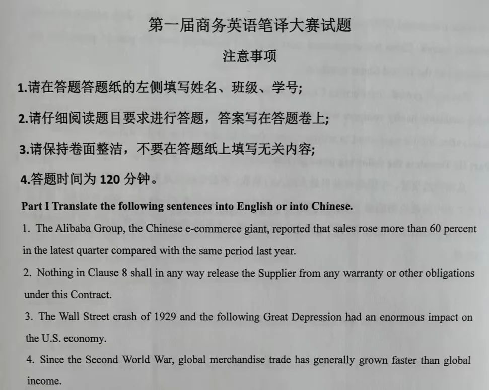 题目中政经翻译类型居多,还有少部分合同类文体,与同学们所学专业很契合,考察了同学们的基础水平和翻译技能应用。也为同学们提供了一次自我检验阶段性成果的机会。
