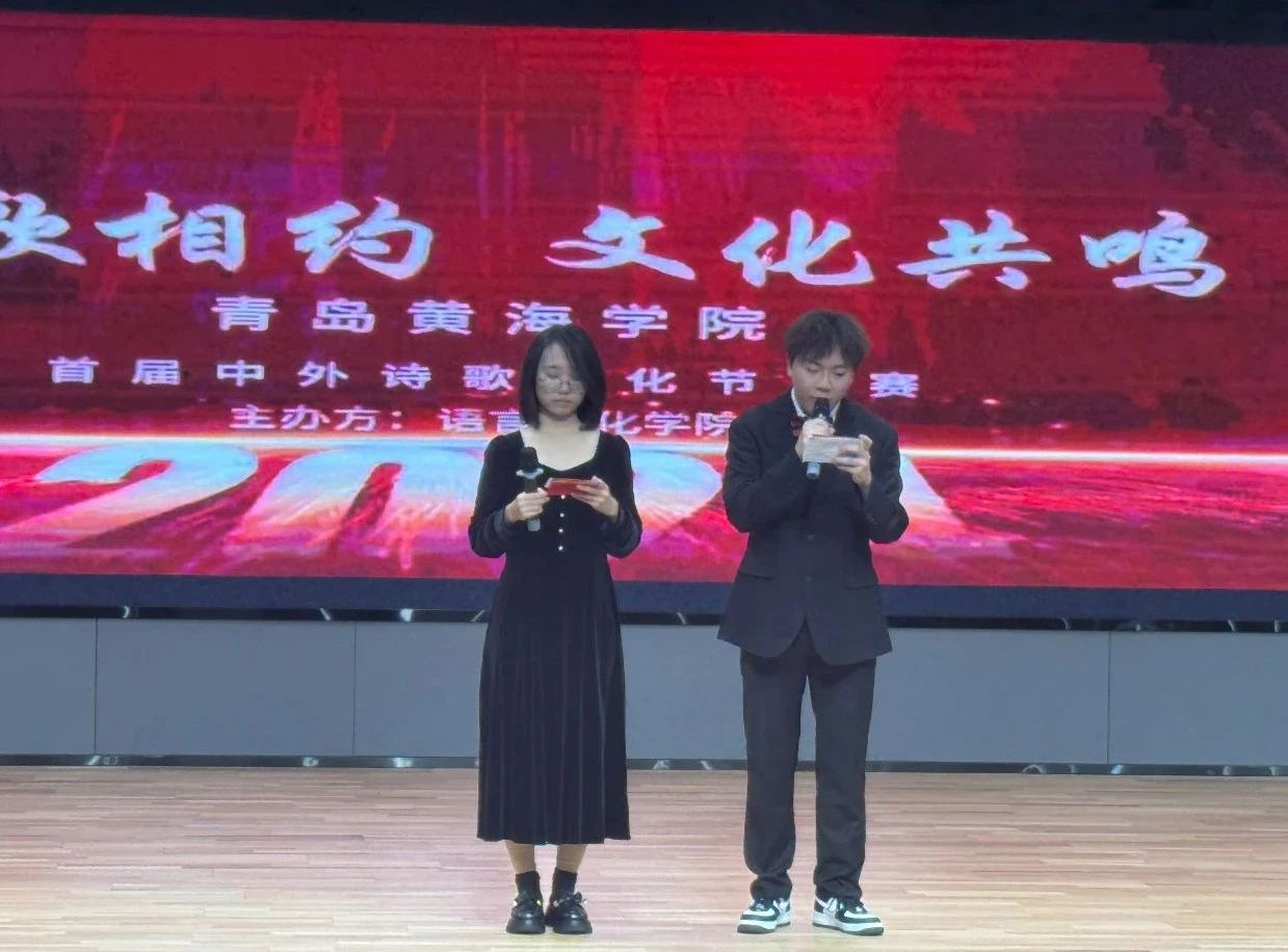 最后,影视学院吴冰沁老师、青岛大学史玉峤教授对所有诗歌进行了点评。在来自不同学院的同样热爱诗歌的同学们身上,他们仿佛看到了年轻时候的自己。他们指出,此次中外诗歌文化节,不仅是是一座蕴藏无尽宝藏的富矿,更是激发创新灵感与情感真挚表达的神圣殿堂。在中外文化节的怀抱里,学子们将生活的酸甜苦辣、对人生的深邃思索、对世界的美好憧憬,毫无保留地倾注于字里行间,在情感的交融与共鸣中,找寻到心灵的慰藉与安宁,让精神的羽翼在诗意的天空中愈发坚韧丰满。