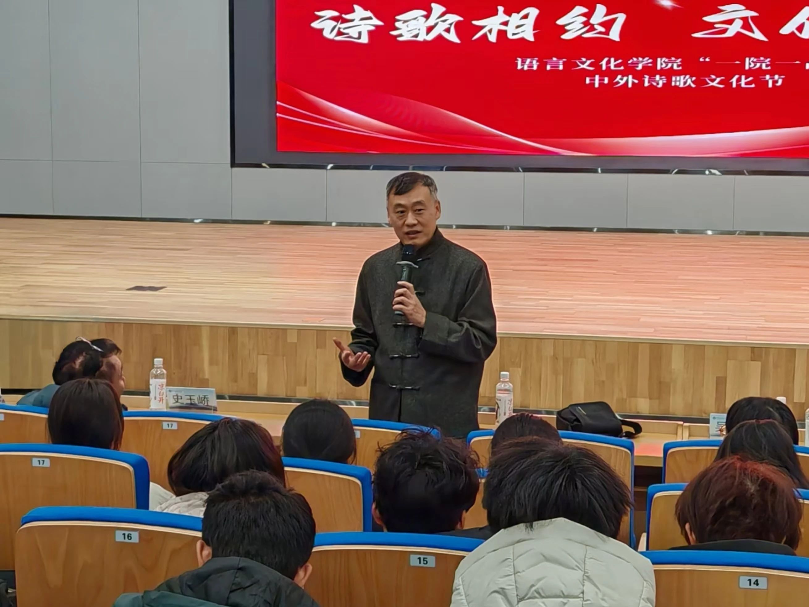 为了丰富校园文化生活,让同学们接触到世界各地的诗歌风格,拓宽文化视野,提升文学素养,激发创新思维。继复赛圆满落幕之后,我院特此于12月11日在知信楼B01报告厅成功举办了“中外诗歌文化节”诗朗诵决赛活动,学院全体师生共襄盛举。