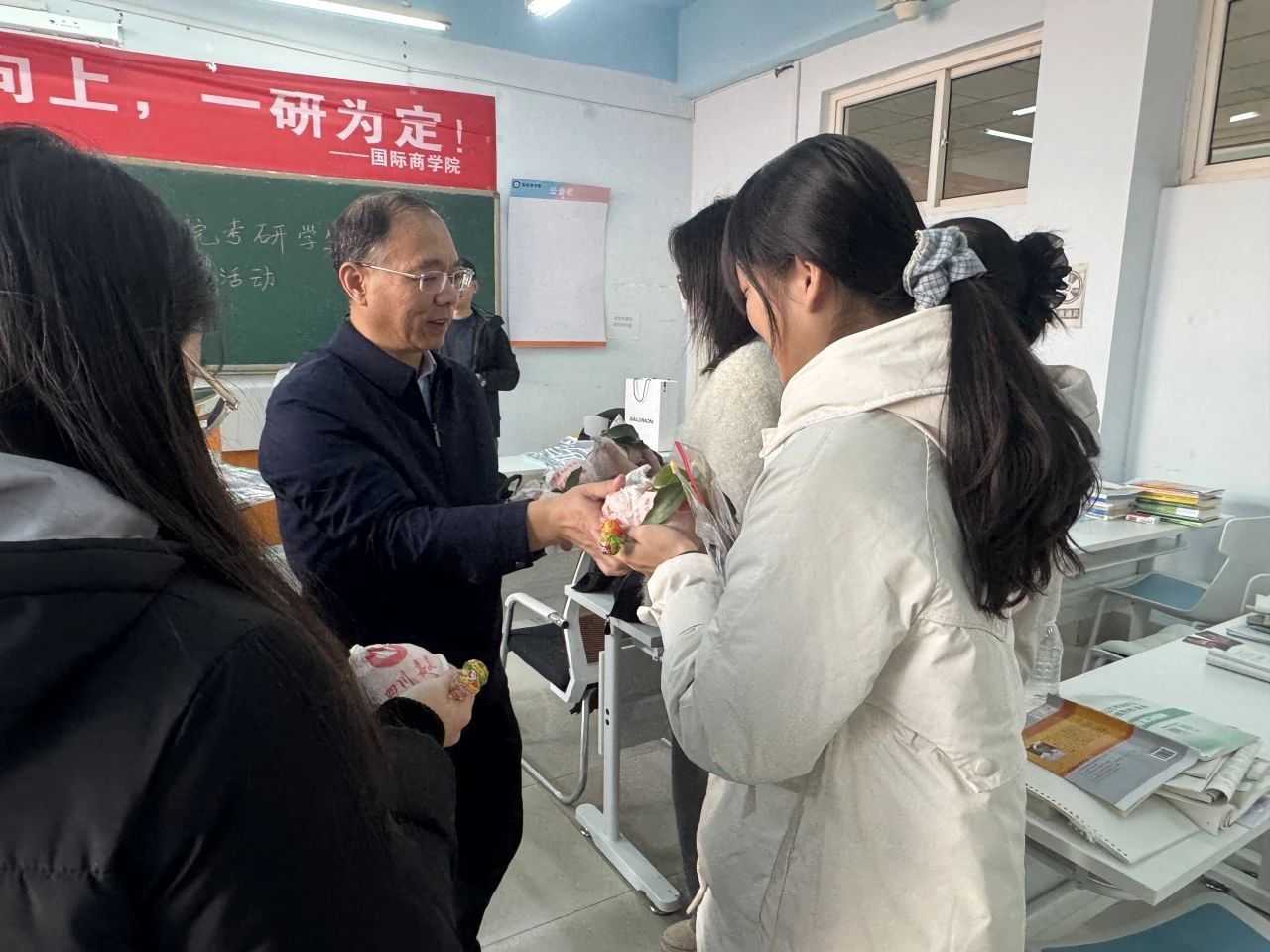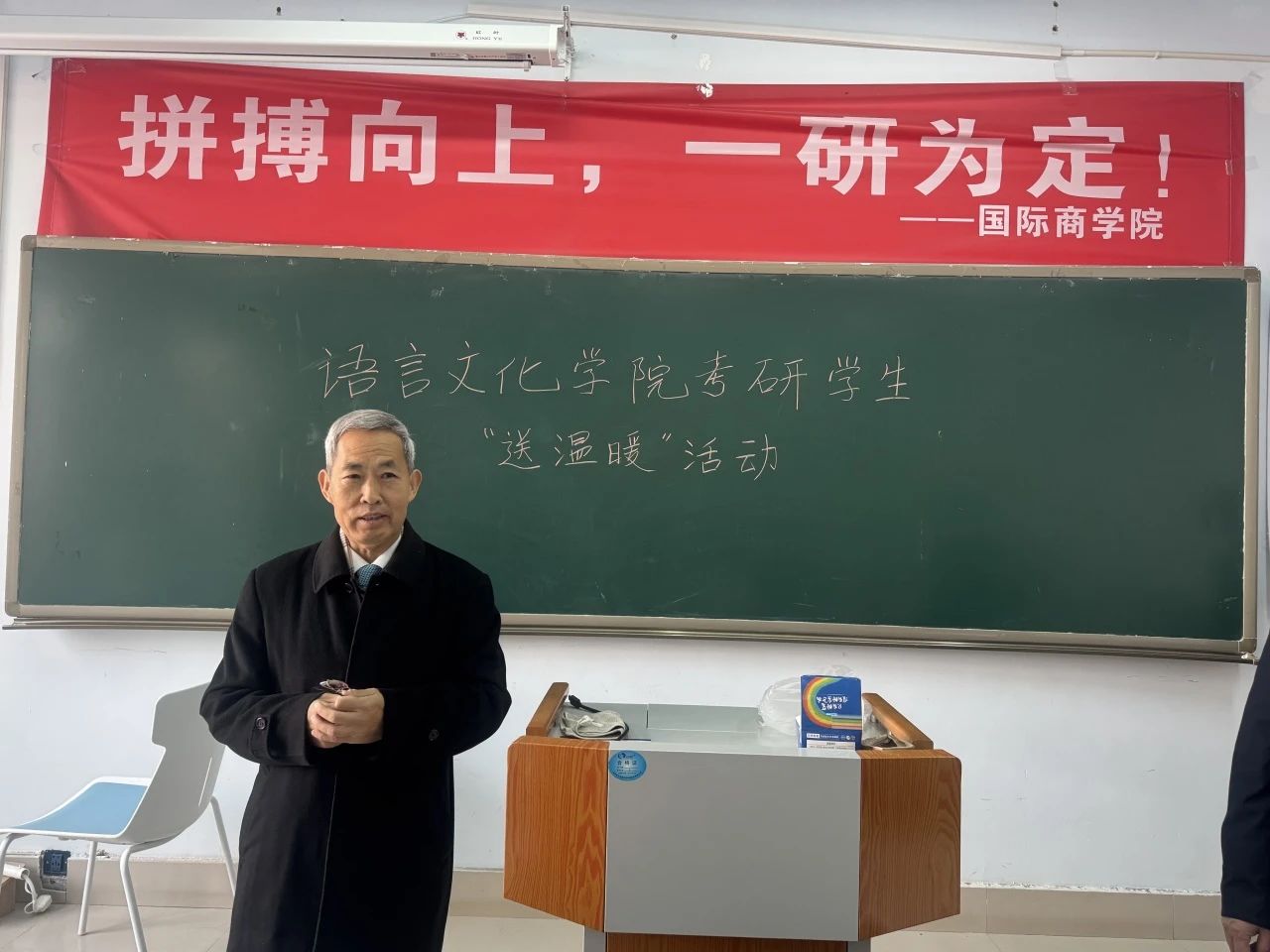 随着冬日的脚步渐深,考研的日子也越来越近。在这个寒冷的季节里,语言文化学院举办了考研学生“送温暖”活动,给学子们送上最温暖的关怀和最真挚的祝福。其中刘中富院长,武学峰教授,陈祥德主任,郭潇雨老师,郭宇豪老师出席了本次活动。