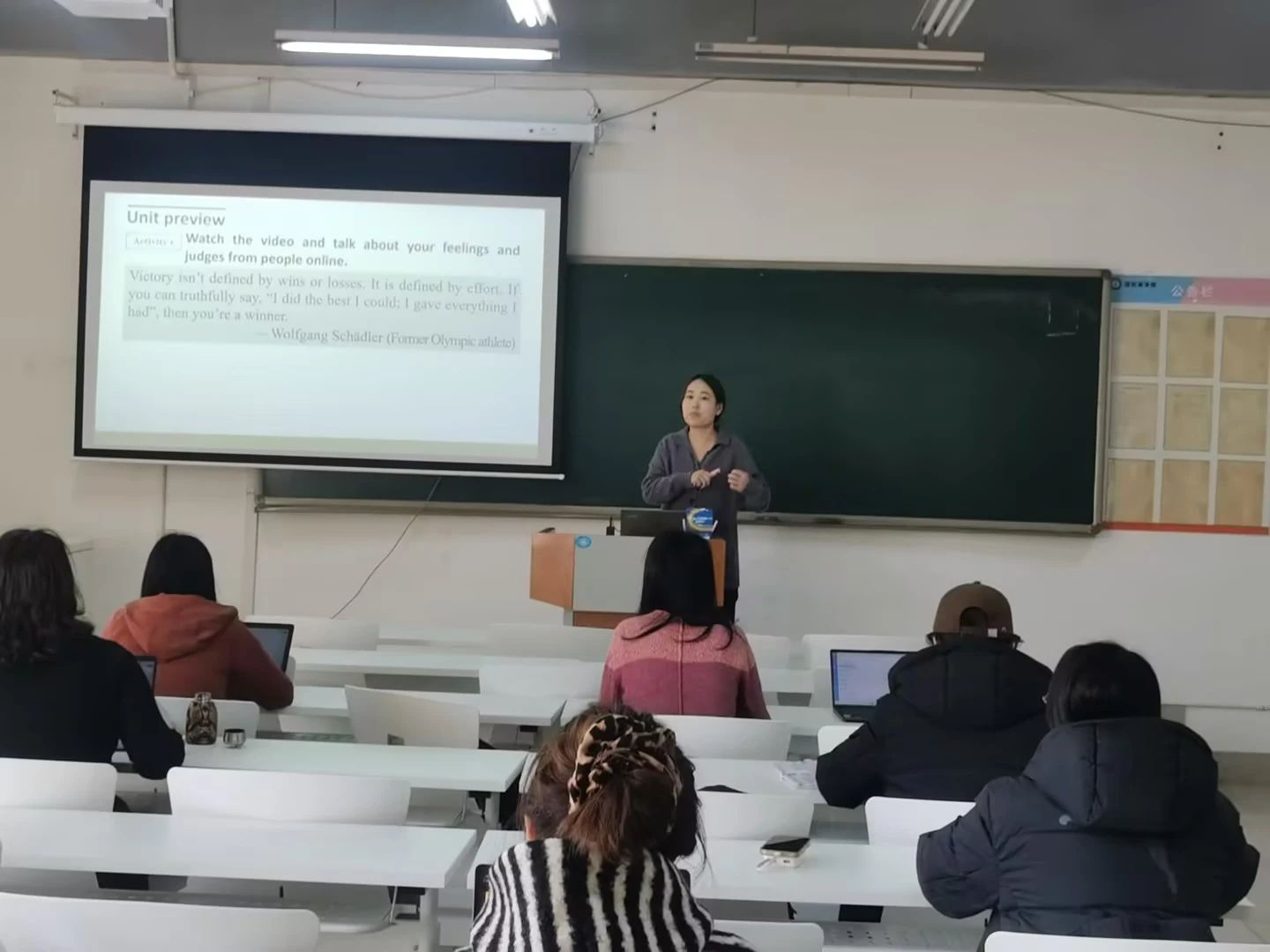 2024年12月31日,语言文化学院大学英语教学部在知诚楼415教室成功举办了新入职教师年终考核教学比赛。此次活动旨在展示新入职大学英语教学部教师的教学智慧,提升教学质量,同时为一线教师的教学能力提升提供引领。
