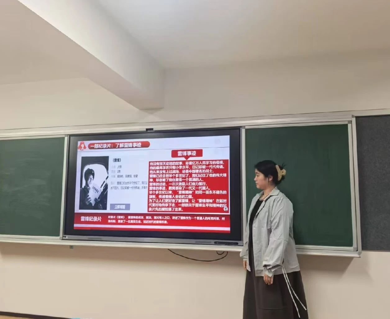 在春风送暖、万物复苏的时节,为了响应学习雷锋故事,传承雷锋精神的号召,语言文化学院积极组织各班在知新楼教室开展“弘扬雷锋精神,争做追‘锋’少年”的主题团课。本次团课通过多种形式,带领团员青年们重温雷锋事迹,领悟雷锋精神的时代内涵,激励同学们在新时代续写雷锋故事。