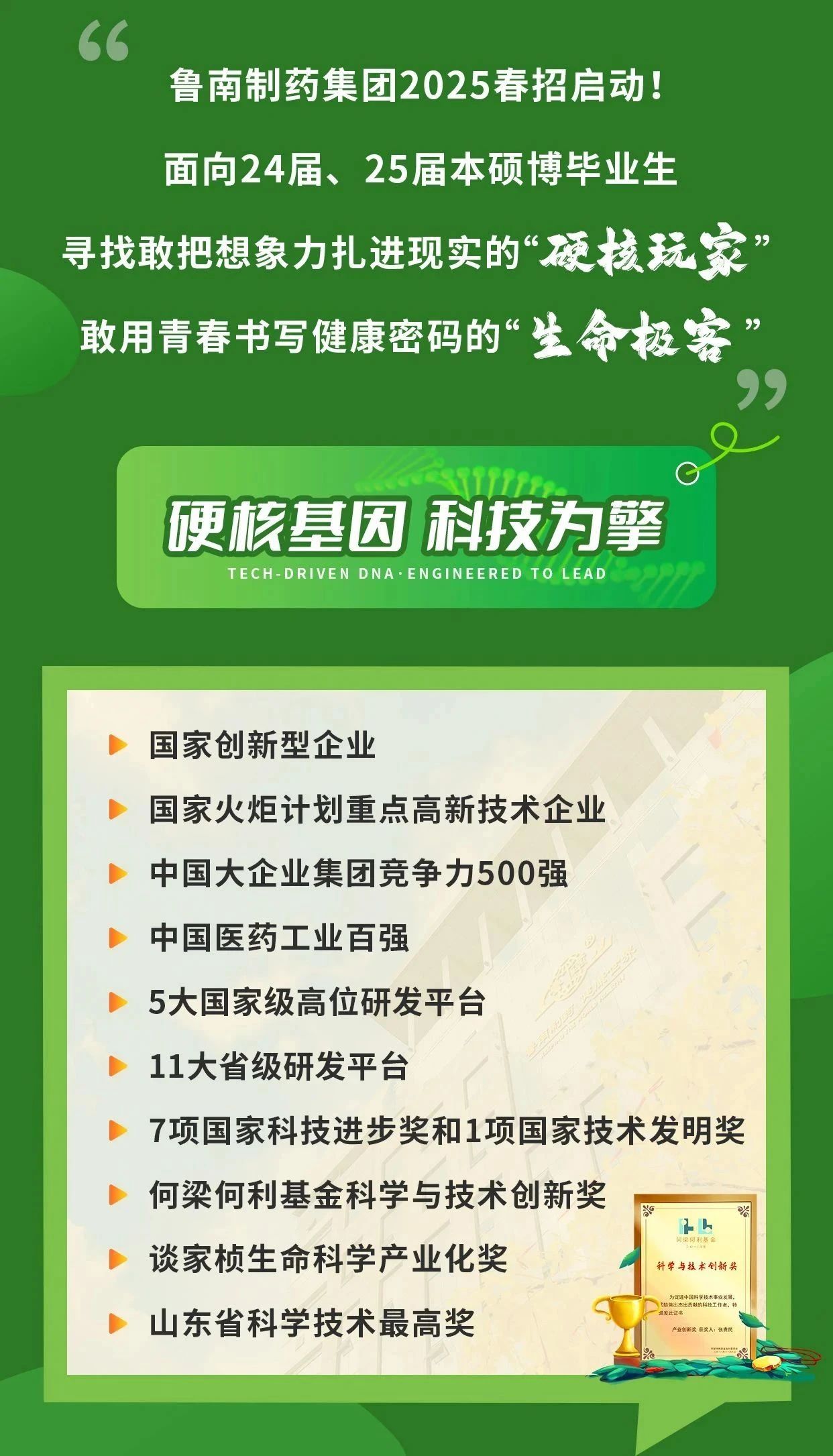 招聘信息 | 鲁南制药2025春招启动!你的青春需要一次颠覆性表达!