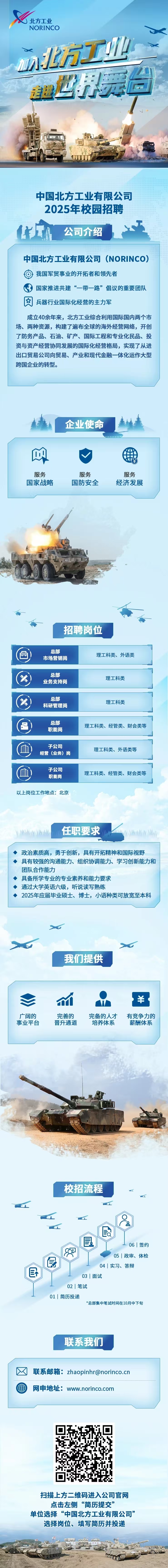 招聘信息 | 外语类可报!中国北方工业有限公司2025校园招聘启动