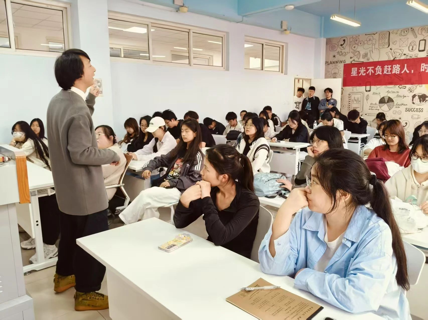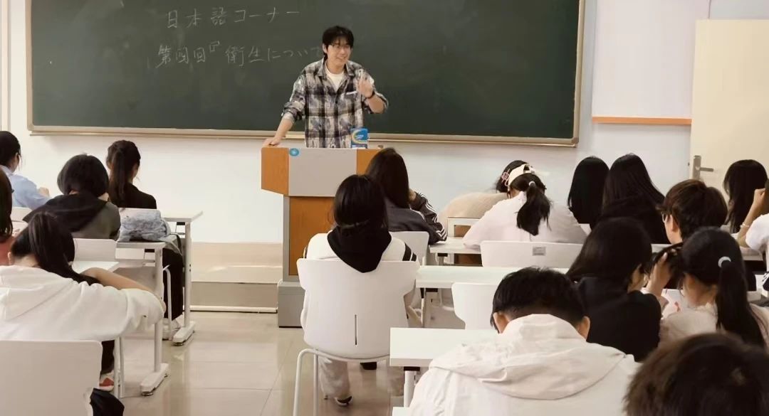 随后,张叶帆老师带着亲切的笑容走上讲台。他知识渊博,用流利的日语为同学们详细讲解了各个节日中与卫生相关的习俗。例如为了迎接新年,人们会进行大扫除,寓意除旧布新、迎接好运;在欣赏樱花时,大家也会特别注意保持场地的整洁。通过张老师的分享,同学们不仅了解了这些节日背后的卫生习俗,还感受到多元文化的魅力,拓展了文化认知。