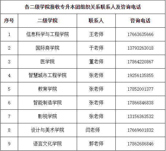 3.团关系和档案在一起,需不需要介绍信? 需要原组织关系所在地开具组织关系介绍信,介绍信抬头填写:共青团青岛黄海学院委员会。原组织关系所在地名称务必与“智慧团建”内名称一致。