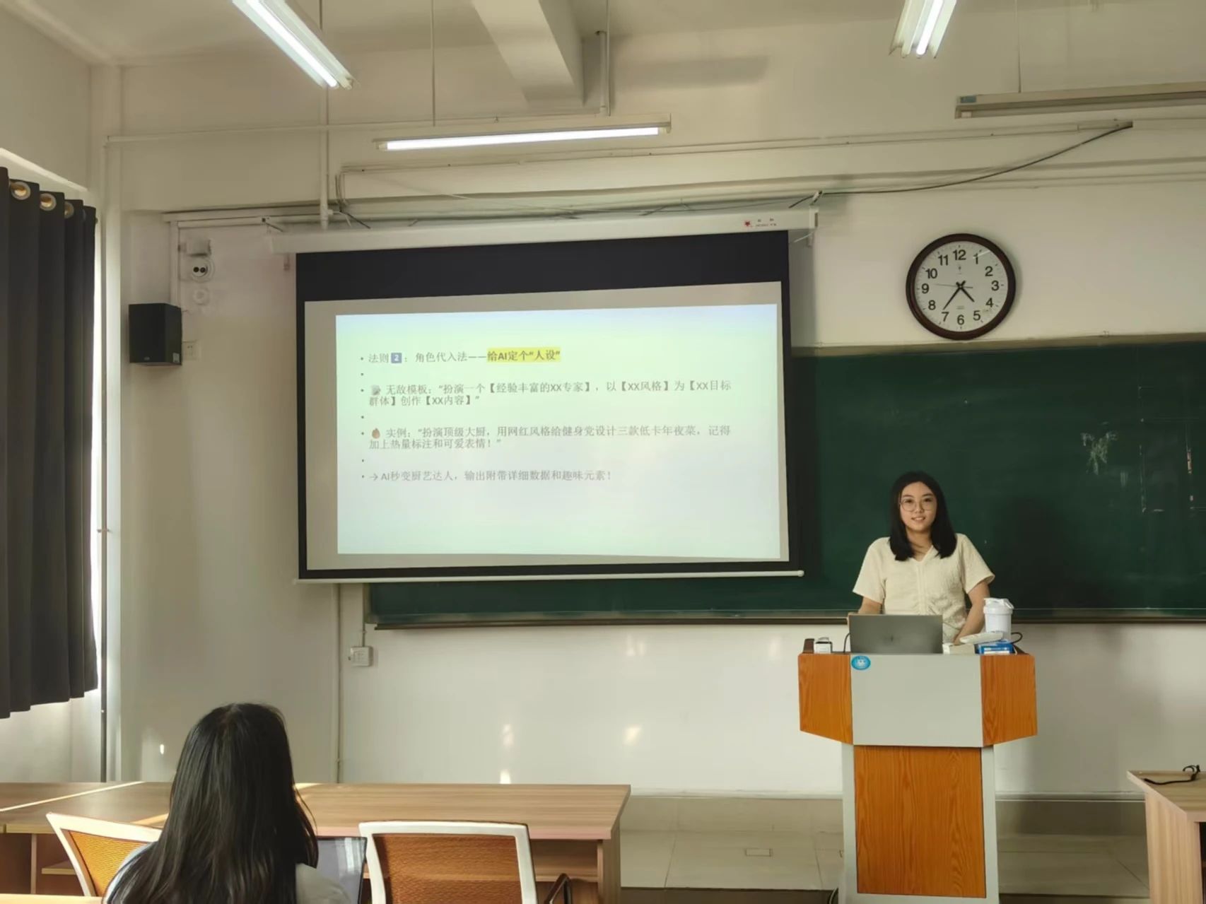 崔主任以本学期英语读写实训课的备课过程为例,图文并茂地讲解了如何借助AI技术,通过角色扮演等教学方法设计各个教学环节,有效引导学生主动产出,真正实现主动学习和深度学习的目标。