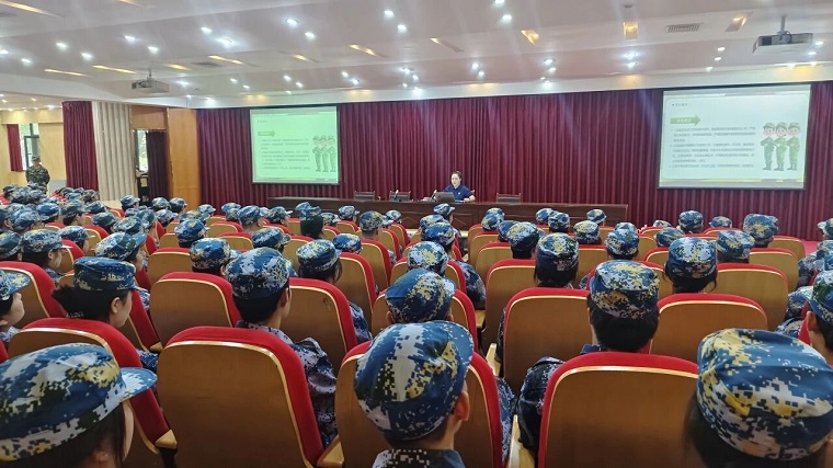 郭潇雨老师在会上详细介绍了军训的注意事项和具体安排。她强调,军训不仅是对身体的锻炼,更是对意志的磨砺,希望同学们在军训中严格遵守纪律,听从教官指挥,展现出语言文化学院学子的良好精神风貌。同时,郭老师还特别提醒同学们要注意安全,合理安排作息,确保以饱满的精神状态投入到军训中。她还分享了过往军训中的一些感人瞬间和优秀事迹,鼓励同学们以学长学姐为榜样,在军训中挑战自我,收获成长。