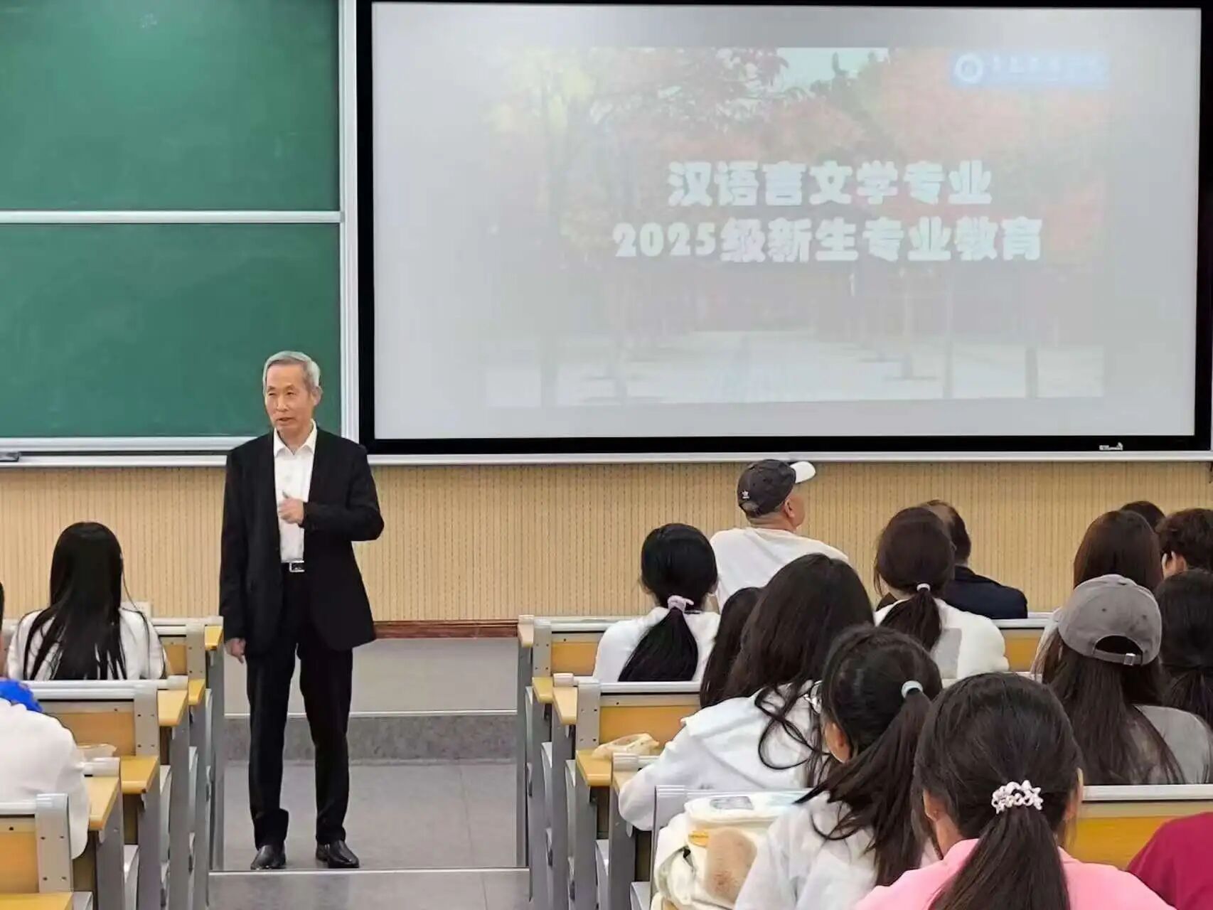 金秋送爽,丹桂飘香。9月29日下午,语言文化学院中文系在知新楼东配202报告厅隆重举行了汉语言文学专业2025级新生专业教育活动。会场内座无虚席,气氛热烈而庄重。一张张充满朝气与期待的面庞,汇聚成中文系崭新的力量。本次活动旨在帮助新生们深入了解中文系的深厚底蕴、师资力量与培养体系,为他们的大学之旅指明方向。