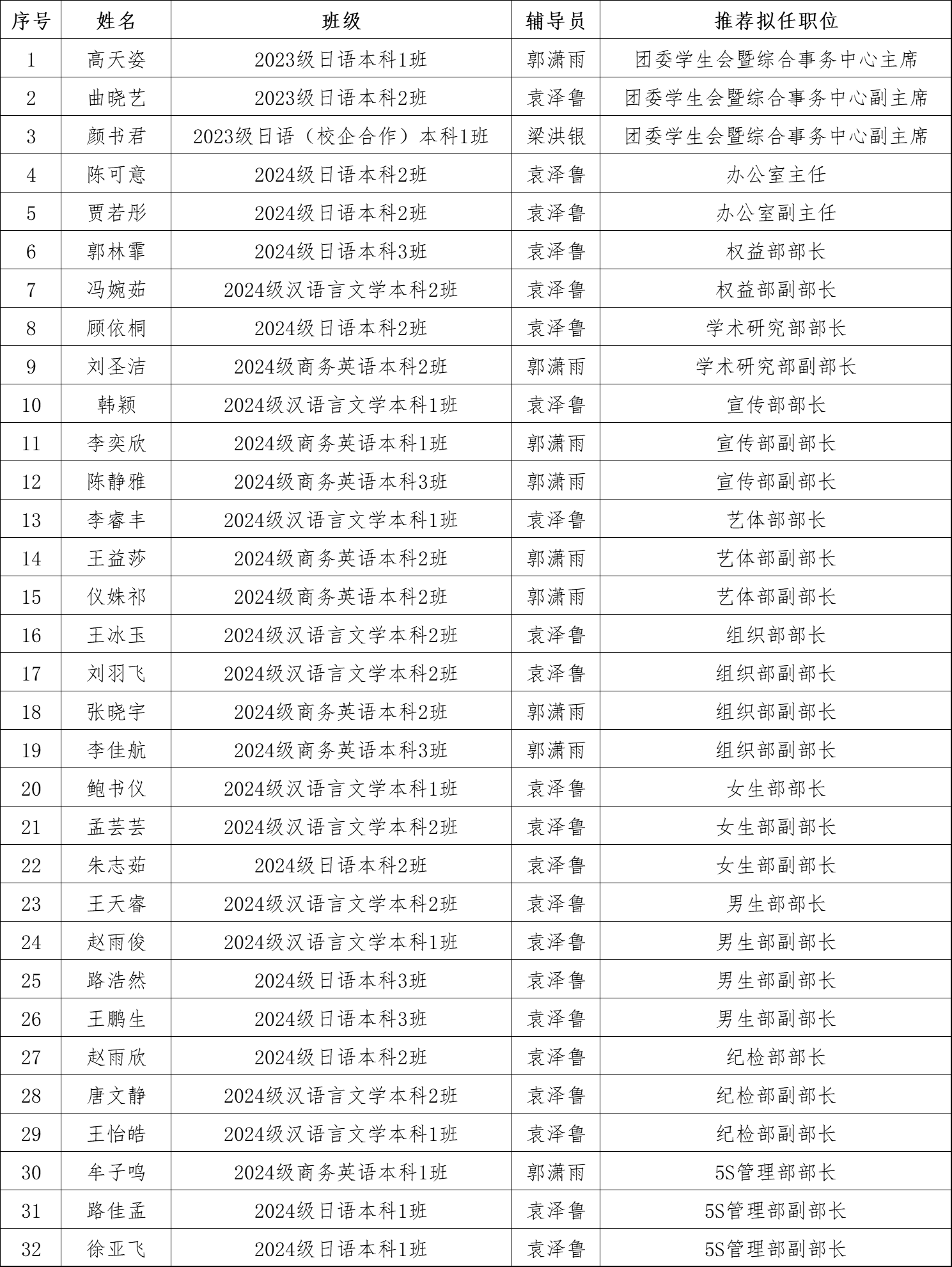 如对以上拟任人选有异议,请于公示期内(2025年10月10日至10月12日)至语言文化学院学生工作办公室(知新楼605)实名反映。