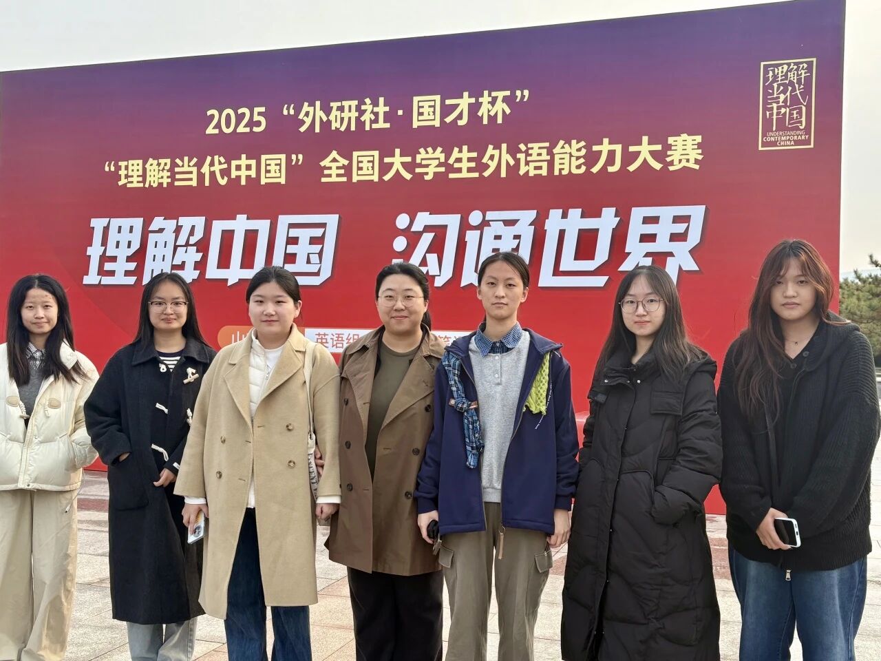 10月25日,2025“外研社·国才杯”“理解当代中国”全国大学生外语能力大赛(山东赛区)英语组综合能力、笔译赛项在山东师范大学(长清湖校区)举行,我校语言文化学院全莉老师带领6名晋级省赛的学生前往济南参赛。