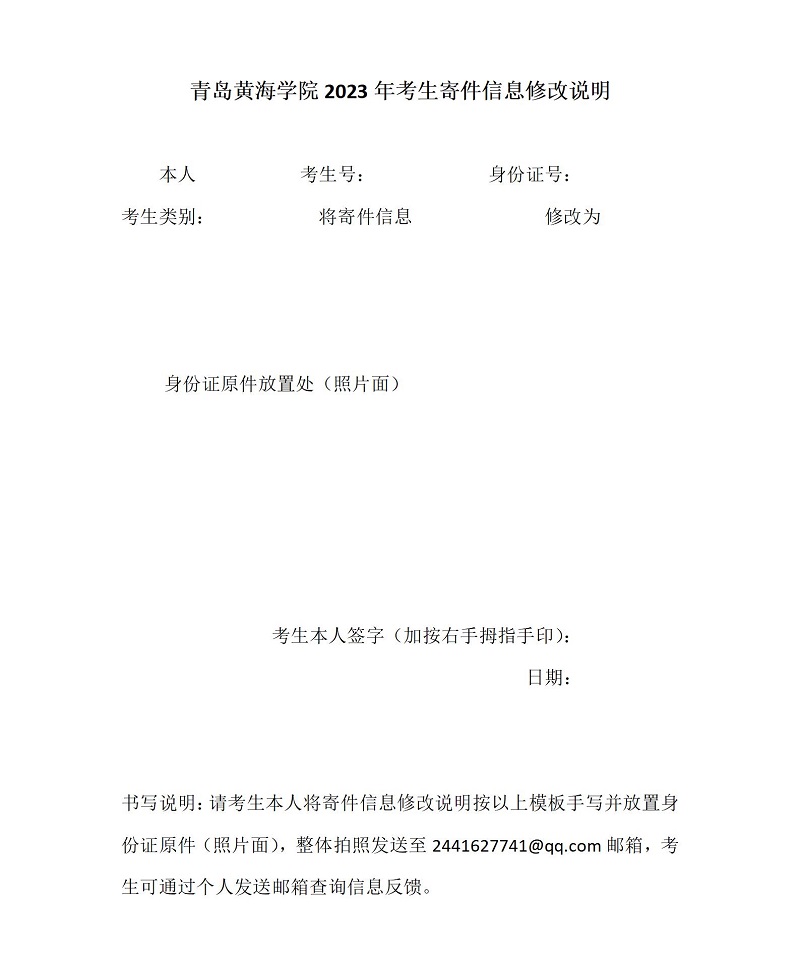 青岛黄海学院2023年考生寄件信息修改说明