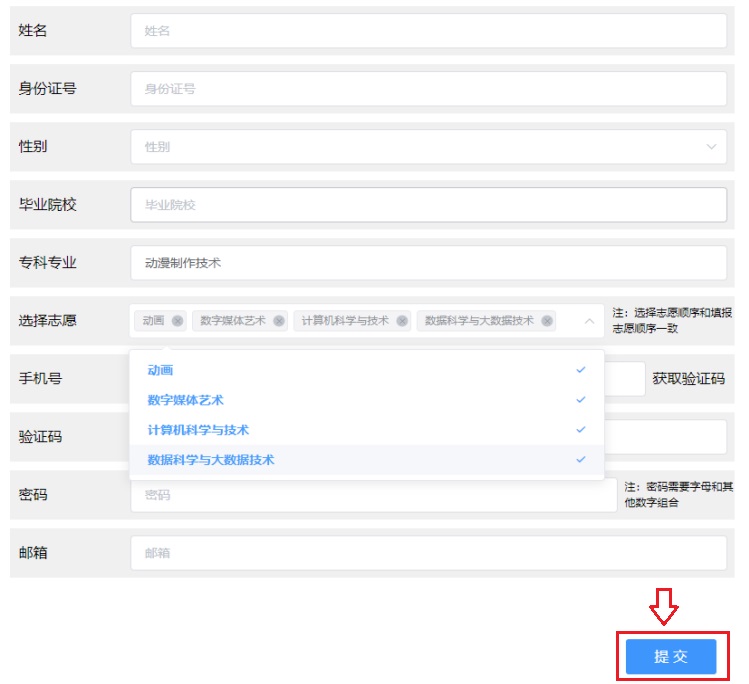 2、考生须填写本人专科毕业专业名称,专科专业名称以中国高等教育学生信息网(学信网)(网址链接:https://www.chsi.com.cn)学籍信息中专科所学专业名称为准,考生需自行查询。