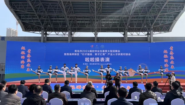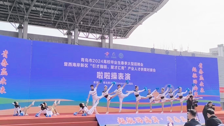 3月23日,青岛黄海学院Amanda啦啦操社团助力青岛市高校毕业生春季大型招聘会暨西海岸新区“引才强链、聚才汇青”产业人才供需对接会开幕式在青岛石油大学举行。