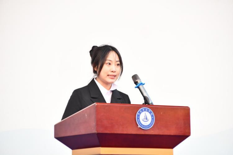 影视学院张晋玮作为教师代表发言,她寄语,大学是人生中充满机遇和挑战的关键时期,同学们既要学习专业知识,又要提高综合素质;既要懂得为人处世的道理,又要树立正确的三观。希望同学们牢记国家兴亡,担当民族之志,敢为人先、发奋图强,将新青年的力量融入民族求索独立的解放中,用青春谱写新的篇章。