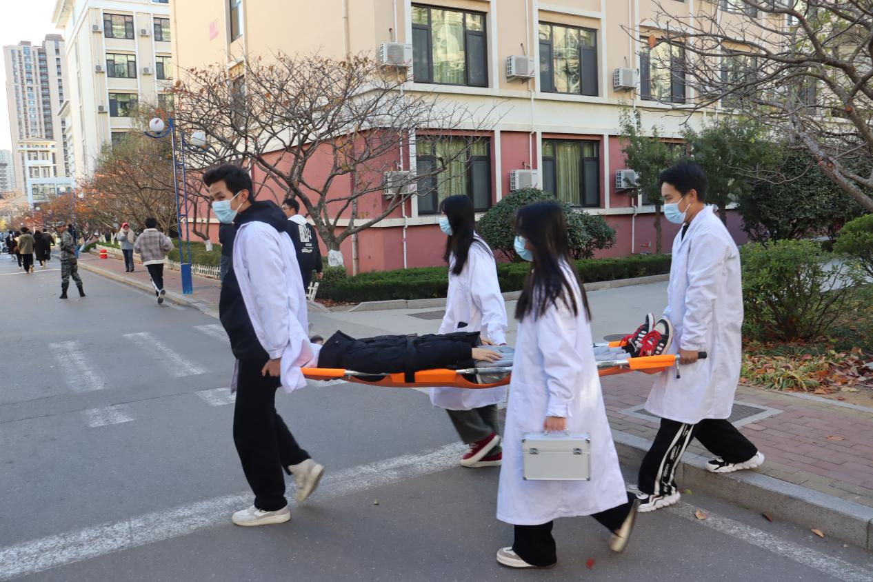 在演练期间还配备了医护人员保障学生安全同时展示了救护方法