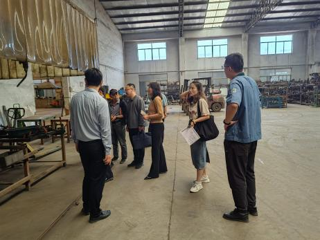 第一站来到青岛东方产业品(集团)有限公司。公司总经理张金香介绍了公司的发展历程,以及主要的经营产品,韩厂长、苏处长就生产中存在的混合气体保护焊、金属板材表面处理、热合机裁切等方面提出了交流问题,杨东进教授以及各位老师一一提出建议,并到车间进行现场考察,双方将通过产学研项目保持常态技术交流。