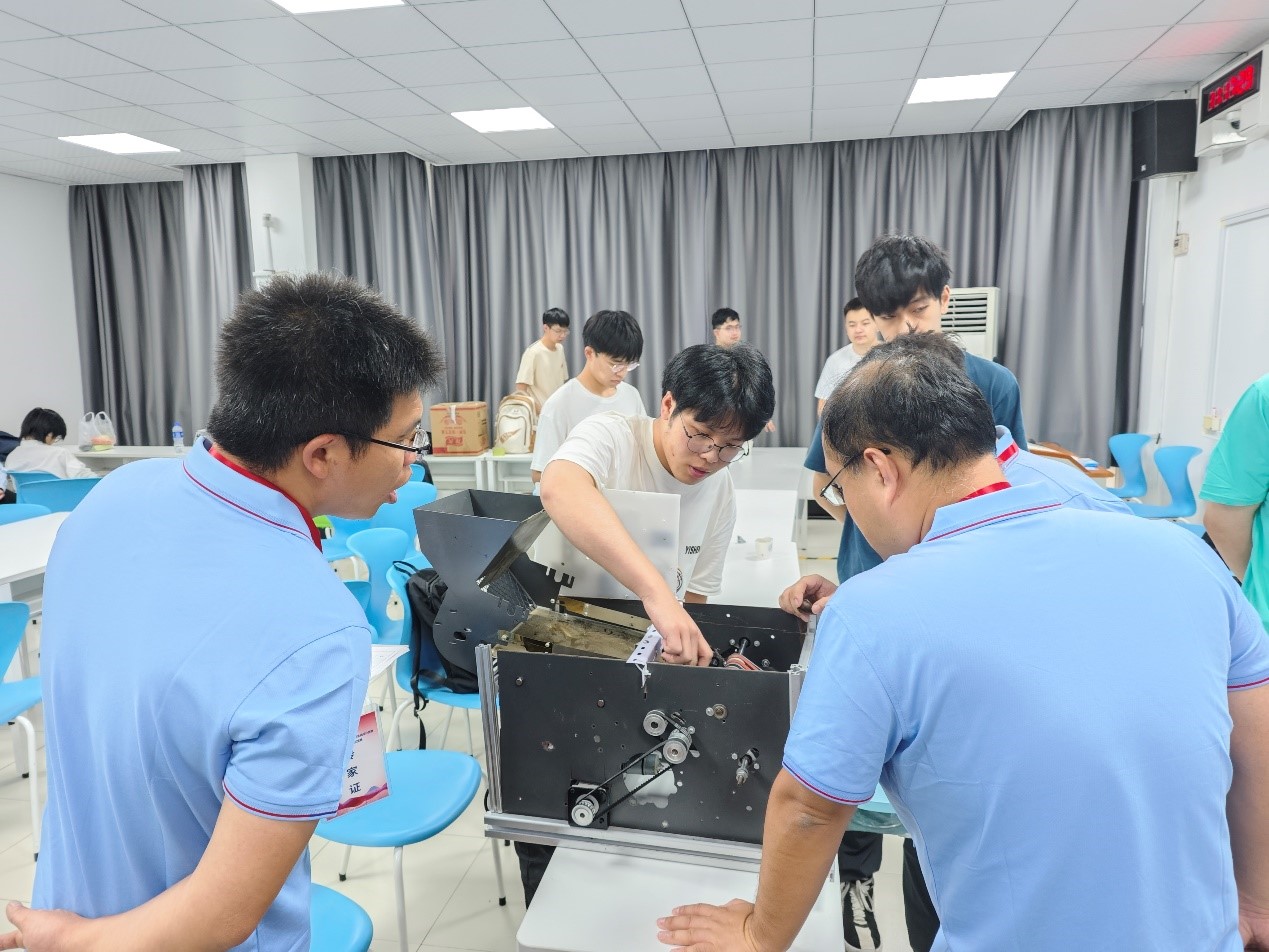 为了参加这次大赛,智能制造学院给予了全方位的大力支持,精心调配了一支经验丰富、专业素养极高的指导老师,他们凭借深厚的学术造诣和实践经验,为参赛学生提供了精准且深入的技术指导,同时还设立了专门的实验场地,让学生们能够进行实践操作,极大地激发了学生的创新思维,显著提升了他们的实践动手能力。比赛时,参赛选手认真调试作品,不放过任何一个细节,最终,凭借着出色的专业技能和优秀的综合素质,学生在比赛中大放异彩。