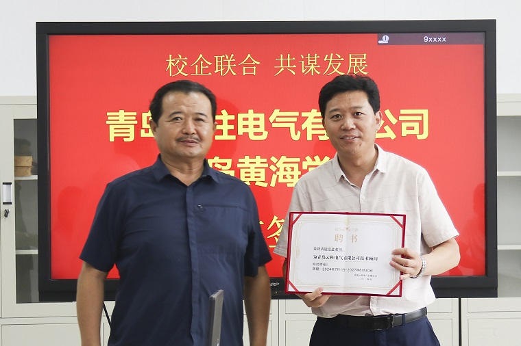经企业方提议、双方协商沟通,青岛云柱电气聘请黄改云和胡绍金两位老师为企业技术顾问。仪式现场,纪毓丰董事长亲自为二位老师颁发聘书,并合影留念。