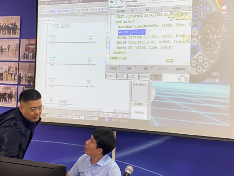 张工免费培训了我院姜云春、张国灵和岳庆超教师,主要培训内容为ABB工业机器人工作站、博诺工业机器人工作站的PLC编程、工业机器人程序编写技巧等。