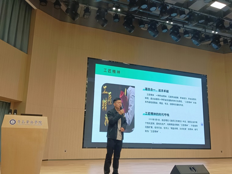 为大力弘扬劳模精神、工匠精神,展示新时代大国工匠、劳模风采,培养有理想、敢担当、能吃苦、肯奋斗的高素质应用型人才,智能制造学院于2024年5月29日在知信楼306报告厅成功举办了第三期“名师讲堂”。本次讲堂邀请到了青岛兰石重型机械设备有限公司焊接特级操作师孙靖东,他以《匠心筑梦,技能点亮人生》为题,为全院260多名师生带来了一场精彩的的专题报告。本次报告会由智能制造学院副院长齐海明主持。