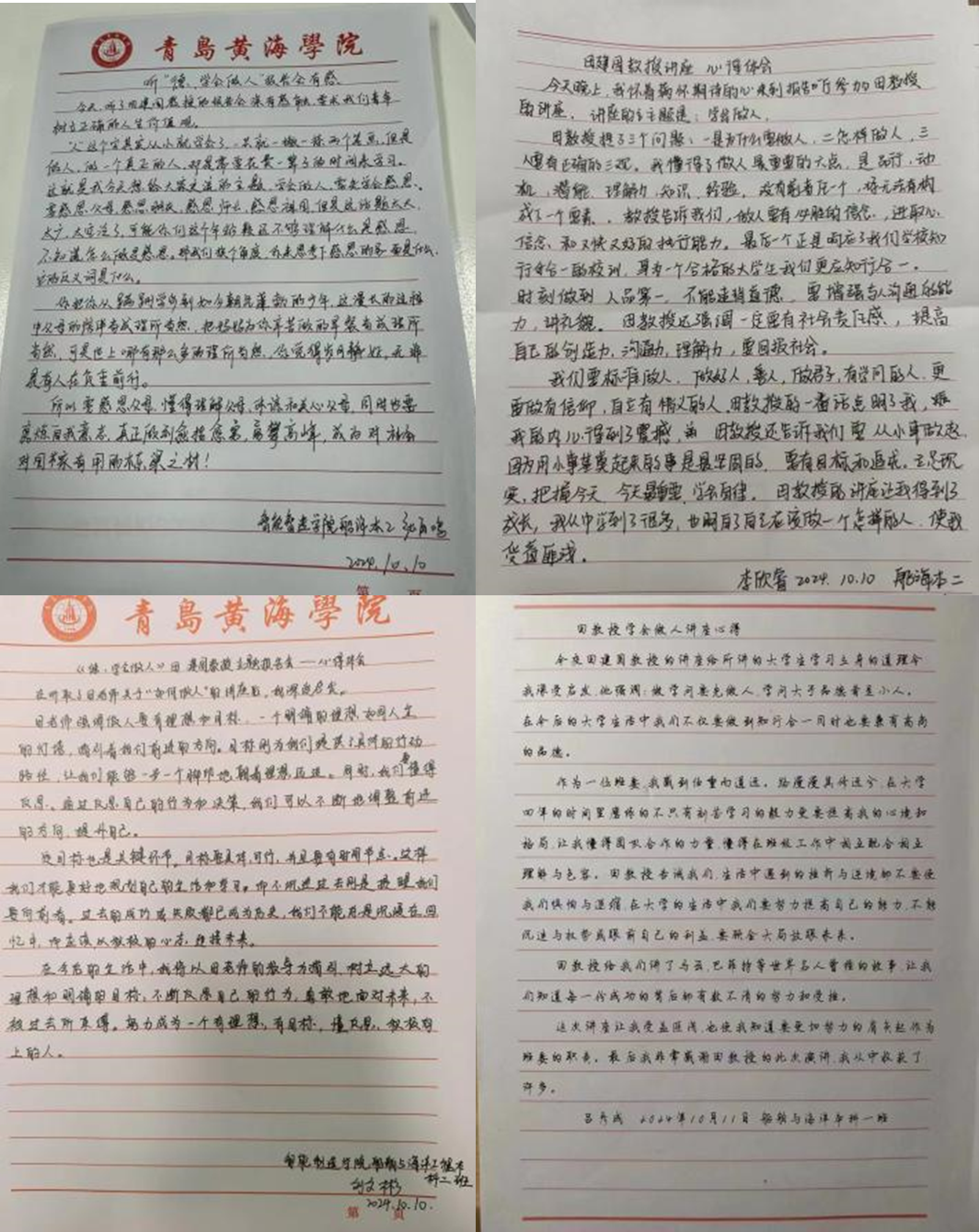 通过这些心得分享会,不仅加深了同学们对“德才兼备”这一理念的理解,也激发了他们追求更高人生境界的热情。相信在未来的日子里,青岛黄海学院的学子们定能以田教授的教导为指引,不断提升自己的道德修养和专业技能,努力成为新时代的栋梁之才。