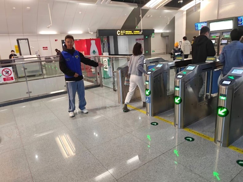 活动当天,身着统一志愿服的志愿者们早早来到地铁站等待,在工作人员的指导下,志愿者们迅速掌握了基本的引导流程和注意事项。人潮涌动的地铁站里,积极热情的大学生志愿者们成为了一道亮眼的风景线。