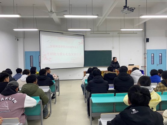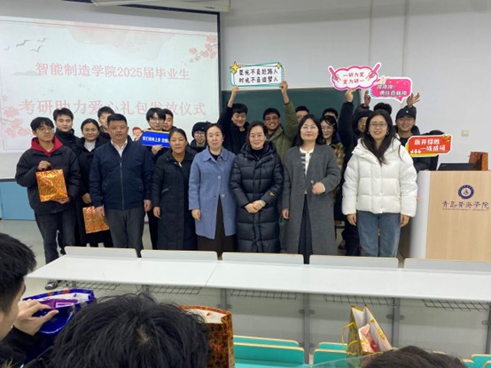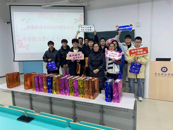 星光不负赶路人,时光不负追梦人。考研途中,暖心相伴,在研究生考试来临之际,为表达对考研学子们的关心关爱,缓解学生备考期间的紧张情绪,提升考试信心。智能制造学院为考研学子送上爱心礼包,为辛苦备考的学子们送上祝福与嘱托。我院院长助理周淑芳、考研负责老师周新院及各系部系主任参加本次活动。