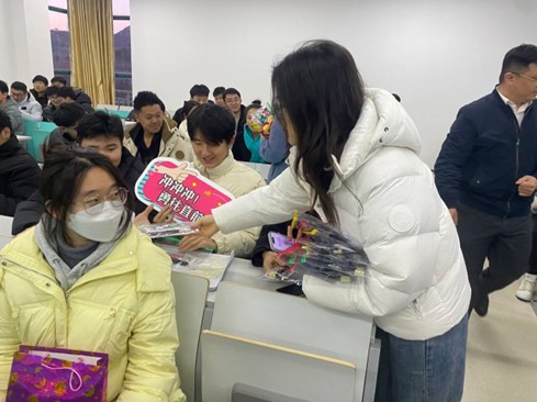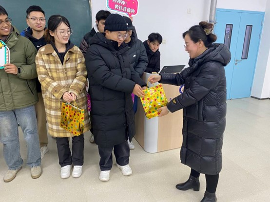 随后周淑芳和各系主任为同学们发放爱心礼包,并送上自己诚挚的祝福,收到加油礼包的学子们深受激励,倍感鼓舞,表示将以昂扬的斗志和坚定的信心,全身心投入到考研备战中,努力实现自己的理想目标。