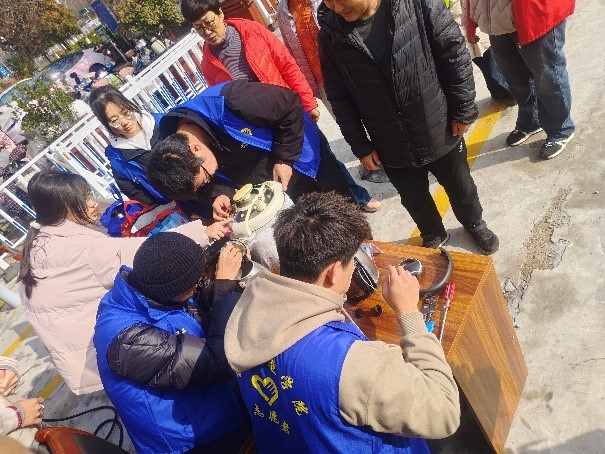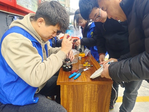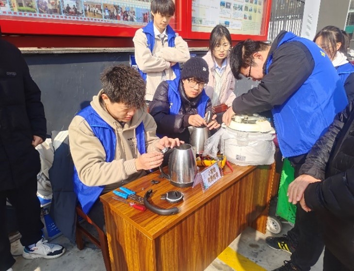 在社区活动室临时搭起的维修台前,居民们抱着家电排起长队。"微波炉门关不严实""电水壶插电没反应",志愿者们仔细检查每个"病号"。志愿者发现李爷爷的台灯不亮,只是开关接触不良,她用砂纸打磨氧化层,边修边教老人保养方法;自动化专业的小张拆开吱呀作响的电饭煲,将松动的内部螺丝逐一加固。看着学生们沾着油污却格外认真的脸庞,居民赵阿姨感叹:"这些孩子连一颗螺丝都不马虎!