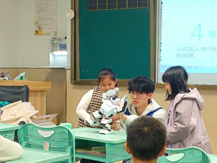 为了让孩子们更直观地感受机器人的魅力,志愿者们还带来了他们精心准备的机器人模型。在志愿者的指导下,孩子们亲手操控着机器人完成前进、后退、转弯等动作,看着机器人灵活的动作,孩子们发出阵阵惊叹,眼神中充满了对科技的向往。