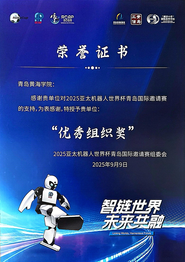 9月8日至9日,亚太机器人世界杯青岛国际邀请赛在青岛西海岸会展中心青岛世界博览城成功举办。智能制造学院选派的队伍经过激烈角逐,力挫群雄、脱颖而出,最终勇夺桂冠,斩获冠军殊荣。同时我校被评为优秀组织单位,获得了优秀组织奖。